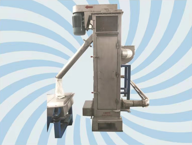 干燥機(jī)是將塑料粒子與水分離的一種設(shè)備。粒子和水進(jìn)入干燥機(jī)在離心力的作用下,粒子以高速、螺旋的形式向上輸送。在向上輸送的過程中,粒子表面水分與粒子進(jìn)行分離,干燥室上部通風(fēng)機(jī)產(chǎn)生的氣流與粒子逆向運動,加速粒子表面水分與粒子進(jìn)一步分離,完成氣流干燥過程。潮濕空氣由通風(fēng)機(jī)經(jīng)出風(fēng)管排入大氣,分離出來的水由出水口排出,粒子得到充分干燥后經(jīng)出料斗排出。